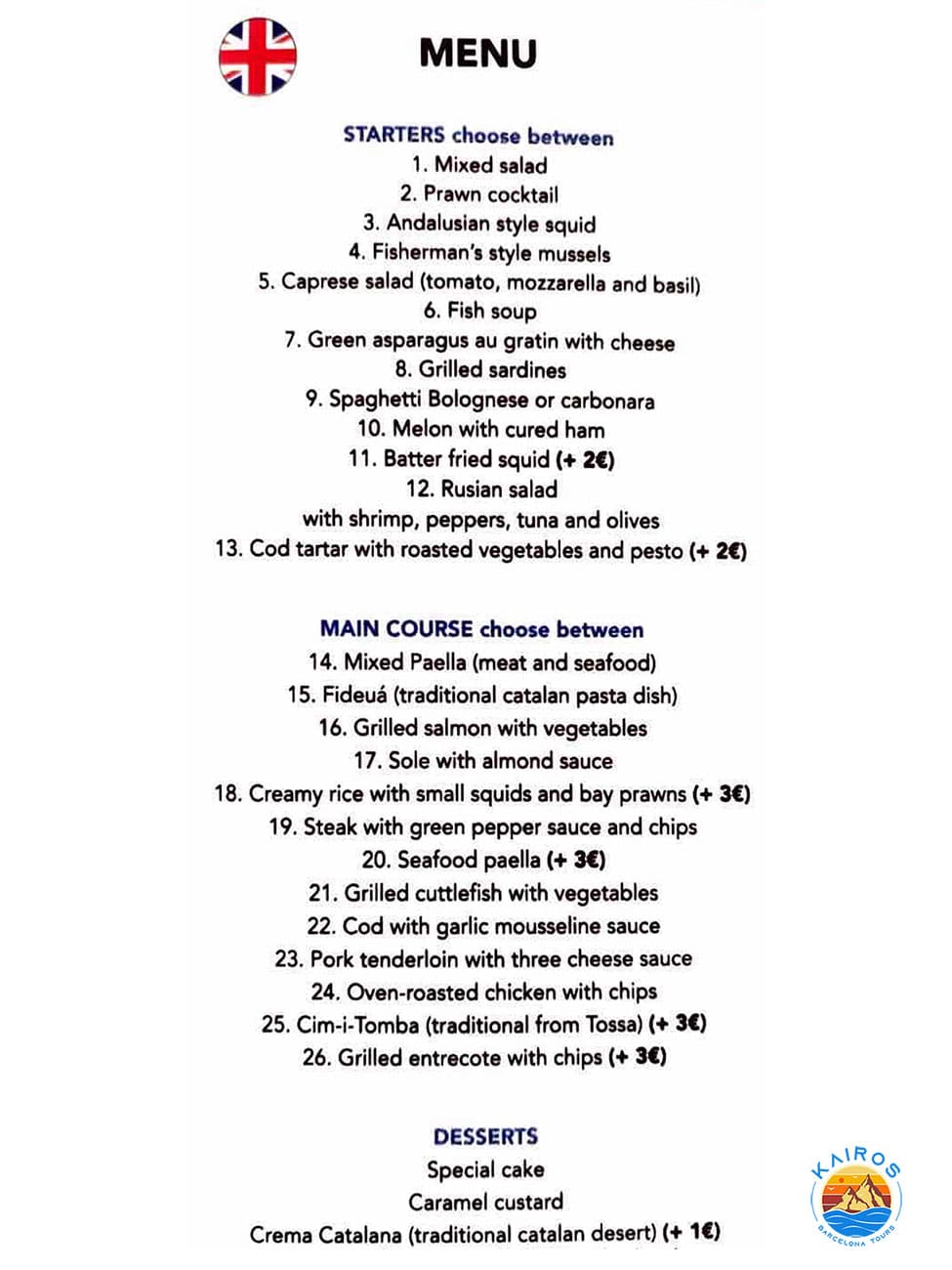 Taste a typical Mediterranean meal in a local restaurant with sea views. Menu included (Starter, Main Course and Dessert). Download here.